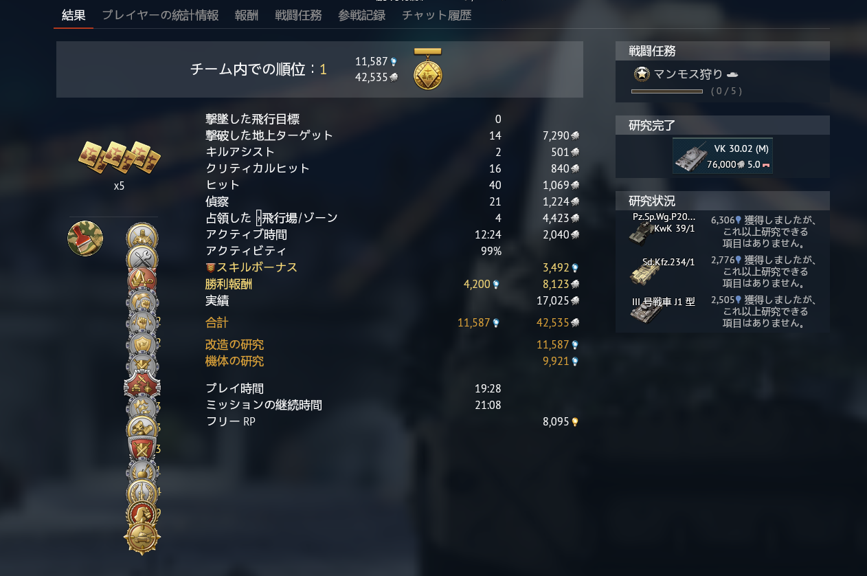 III 号戦車 J1 型 96% 8:02 735 + (PA)735 + (ブースター)368 = 1838 RP