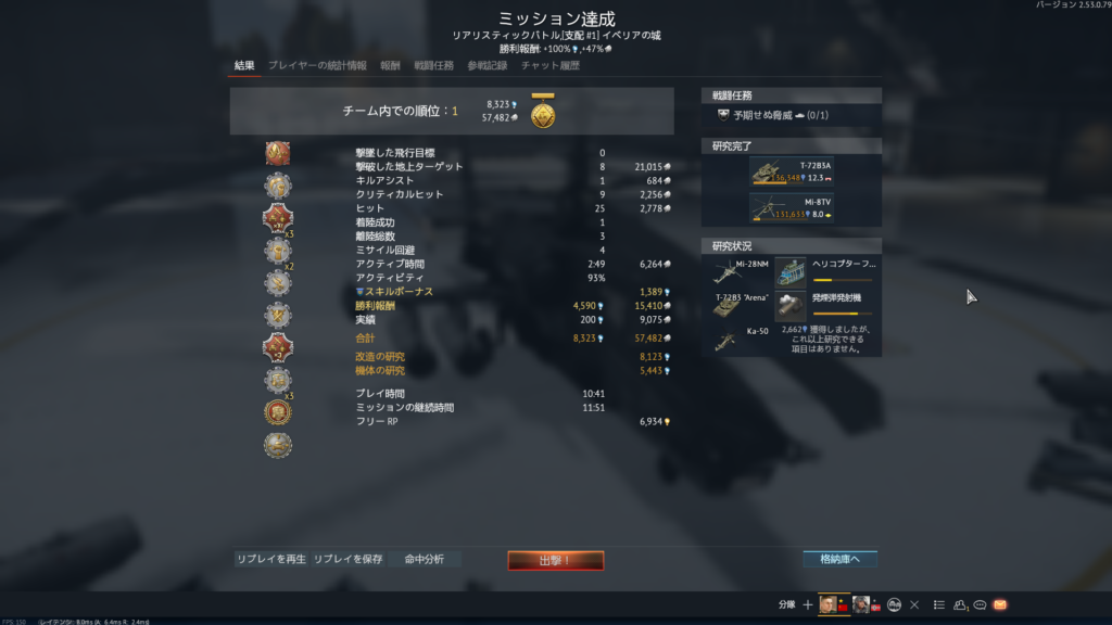 Ka-50 79% 2:23 378 + (PA)756 + (護符)378 = 1512 RP