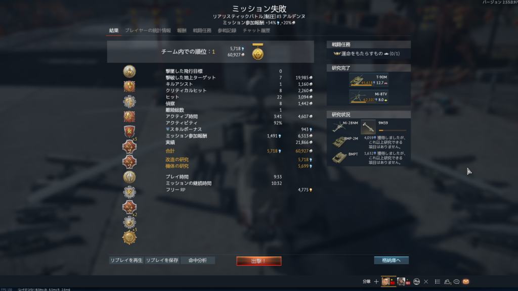 4:58 BMP-2M 9M133 チャレンジャー 2 200 ミッションポイント 1730 + (PA)865 = 2595 SL 131 + (PA)131 + (ブースター)20 = 282 RP